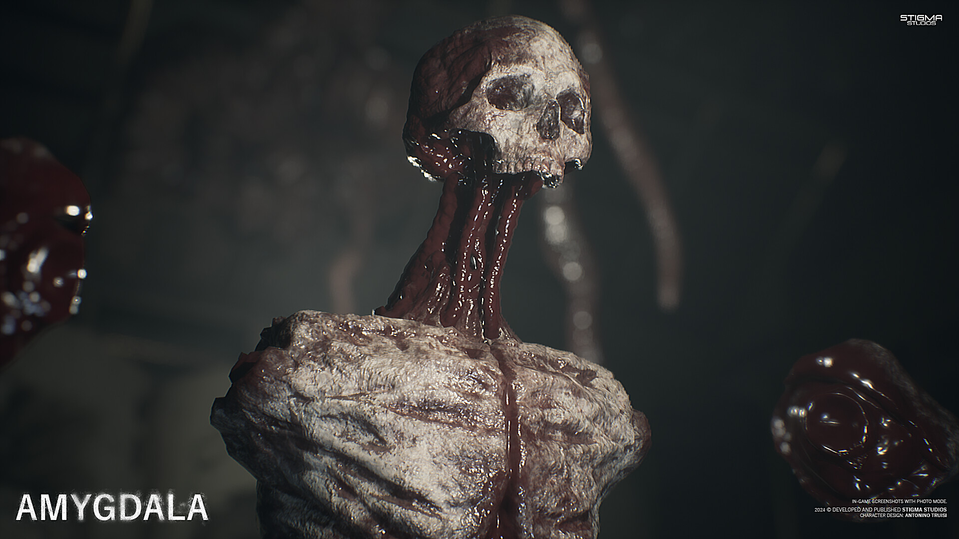 Amygdala | SynopsisWelcome to the haunting world of Amygdala, an horror experience that explores the dark depths of the nightmare realm, manifested through incredible and terrifying creatures. Confront your deepest fears and uncover what lies behind the Amygdala. Prepare to immerse yourself in the sinister beauty of horror.Wellcome to Amygdala | StoryStep into the eerie world of Amygdala, a first-person horror game that takes players on an unsettling journey through mysterious dimensions. Explore a haunting location, uncovering its secrets while encountering terrifying monsters that lurk in the shadows. Amygdala is the destination of all the entities in the Universe that are lost in the nightmare. There are cases in which some entities are allowed to have their own symbolic body as a manifestation of the nightmare; This is the case for entities that manage not to succumb to the nightmare but to live through it, and in the most formidable cases, to control it.These individuals are known as Rulers of NightmaresIf a nightmare for some reason becomes unstable, the Absolute Judge takes action takes action through you, and this is where your adventure begin.You are the nightmare seeker and it is your job to take the eyes of the Rulers of Nightmares.Terrifying creatures, to be feared or... | Unique Gameplay featureEmbark on a journey through Amygdala, where monstrous creatures await. Uncover the secrets they hide, the reasons behind their existence, and go into their nightmares.In Amygdala, you will encounter different creatures, each with unique their nightmares.Face nightmares and gain the eyes of the Rulers of Nightmare;Unique creatures, terrifying but at the same time mysterious;Discover mysterious, macabre but at the same time fascinating settingsLet yourself be drawn into this atypical narrative horrorStarting from the Amygdala, the Main HUB after the speech of the Absolute Judge, you will be able to freely explore the hub and freely choose which nightmare to start from:The Nightmare of the Big Head: Discover what happened inside this nightmare, mysterious rituals, strange creatures within a setting reminiscent of corridors of an ancient hotel now abandoned.The Nightmare of Insatiable Knowledge: Inside a giant vertical bookcase, you will have to feed insatiable creatures by climbing through this bookcase in search of the most... delicious books. But be careful, there are other hungry creatures.The Nightmare of Beauty: A sick and distorted nightmare, where the representation of perfect beauty through mannequins merges with what the media canons impose on us... evolving into a macabre attempt to find beauty... but what is the beauty? You will have to find out within the walls of crumbling laboratories.Once you have completed your task you will be able to have an audience with the Great Monolith... some say it can make your nightmares come true.Unique Creatures | Monsters shaped by nightmaresEncounter unique creatures, known as rulers of nightmares, entities who have been able not only to withstand the nightmare but to master and shape it according to their desires.These rulers of nightmares have earned a place within the Amygdala, where the Absolute Judge supervises the stability of these nightmares.Stunning Nightmare | Unreal Engine 5Nightmares connected with a subtle artistic thread that unites the aesthetics enhanced by the Unreal Engine 5 graphics engine. Immersive lighting rendering to immerse the user in a supernatural experience.Info | More Info & SocialAmygdala is a solo developer game.Amygdala was not born with the idea of innovating the gaming industry or being the best horror game ever made, but was born simply to give context and show some creatures created by me connected with the basic idea of expressing different emotions.I hope these creatures can accompany you in your deepest nightmares.Sensitive Content and Photosensitivity Warning:Amygdala contain strobing and flashing lights that could cause a small percentage of people to experience seizures when exposed to certain lights, patterns, or images. This game also contains intense violence, gore, graphic sexual content, and strong language. Please enjoy this nightmares.