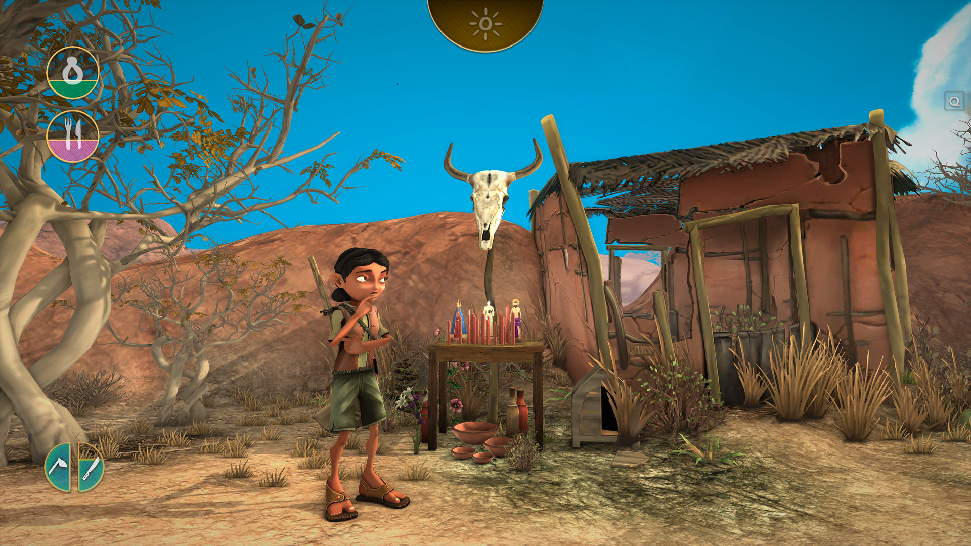 Face the effects of drought in this historical single player game that blends elements of survival and adventure. Join Cícera to live a journey of survival and adventure in the Brazilian backlands of the nineteenth century. Gather resources, build tools, learn to survive and interact with other characters. Be strong, have the faith and wisdom to explore the drought-stricken regions and find out more about her destiny. Equipped to venture out To survive in the backlands you will need some equipment. Use the machete and hoe for essential actions such as getting water, opening paths or cutting a corn crop. But do not forget to have a handful of grindstones because blunt equipment is of no use!Get ready with recipes To live in the backlands you need to be wise. The fauna and flora are unusual, so try to learn the recipes available for crafting with the typical items of the region. Maybe one day you need to cross the backlands ...Interact to survive Hunger and thirst can be very cruel in the backlands during the drought. Ask for help for the elders of your village and solve their quests to get some water and food.Explore to know Explore the aridest regions to learn more about the backlands and find the resources you need to stay on your way. A full inventory is always a good idea!Stories to learn The Brazilian Backlands is a special place, with many stories that would only happen there. Venture out to search for the collectible lost objects and find out more about the legends of the backlands.The drought this time came much stronger and changed the daily life here in backlands. Many plantations were lost, animals died and families abandoned their homes. It is in this scenario that Cícera lives, a curious young girl who uses the advice of her grandfather and other villagers to learn how to survive and strengthen herself to face the drought and realize her greatest dream: exploring the backlands to reunite with her parents. Arida: Backland's Awakening is the first of three games that will tell about Cicera's journey in the Brazilian Backlands of the nineteenth century. Follow our social networks of Aoca Game Lab to stay connected in the news of the Arida project. Come and build this story with us! We are an indie team of 8 developers from Brazil. We deeply believe in the expressive power of games and are driven by the desire to communicate the values that we believe through the projects we develop. Arida is our first project and it is an immense pleasure for us to share it with you.